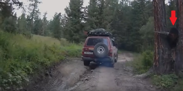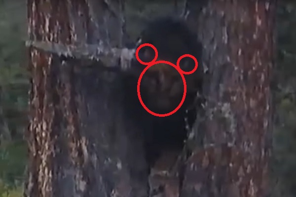 While it could simply be someone wearing a mask standing behind a tree, it is a very odd scenario. Whatever or whoever this thing is, watched these two vehicles drive by. Either way, its quite creepy and makes you wonder what they or the demon was up to that day—hanging between two trees. The forest can be a spooky place even during the daylight hours.